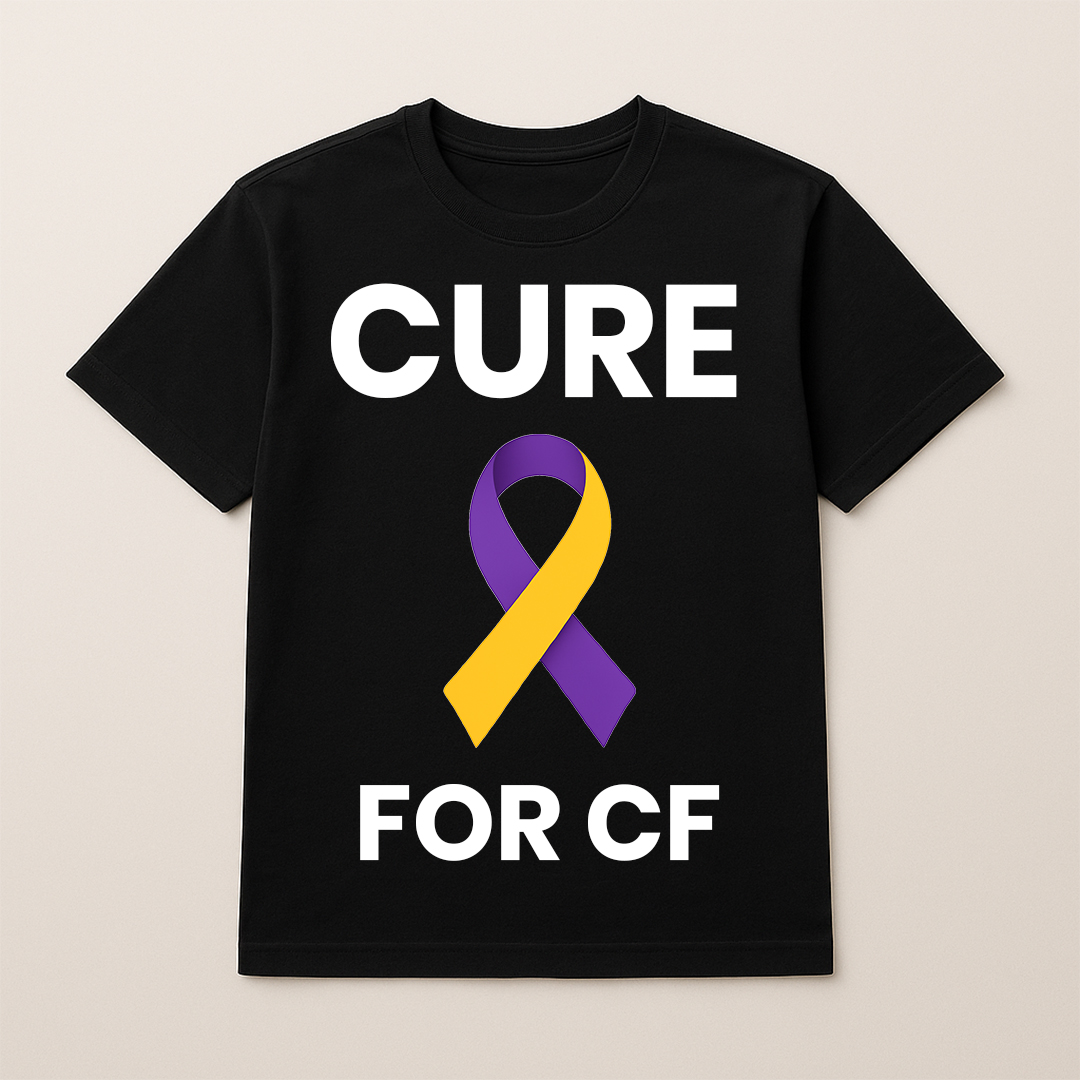 Each shirt and hoodie features bold CF awareness designs and a sponsor panel on the back, honouring the businesses who help make this mission possible.